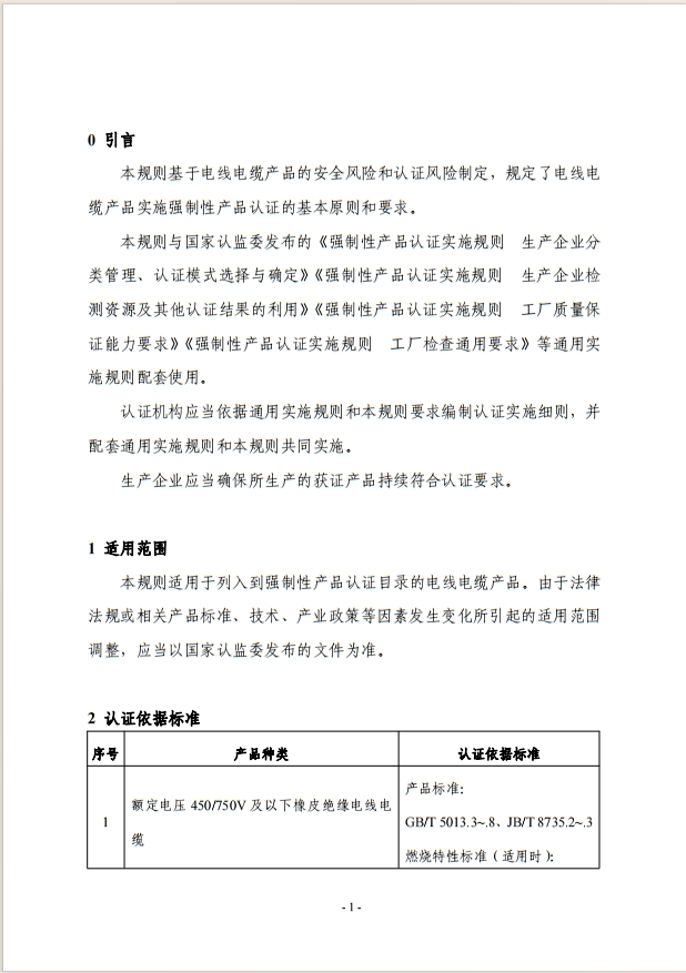 電線電纜 強制性產(chǎn)品認證實施規(guī)則